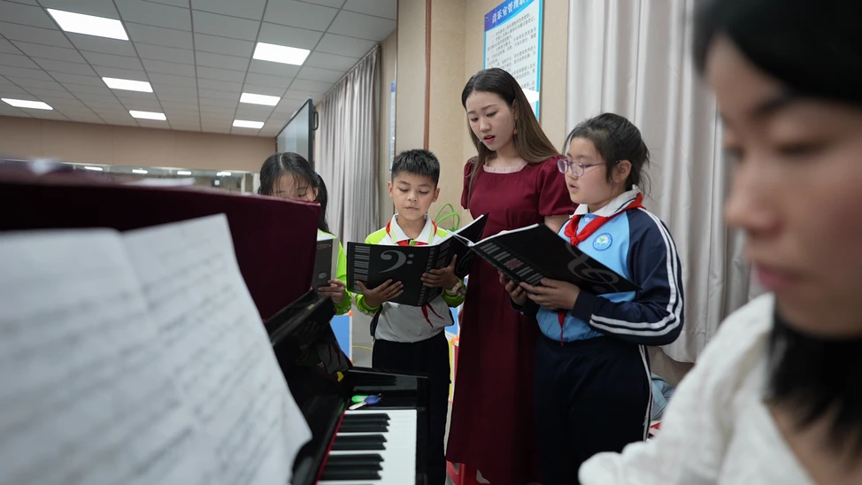 胡瓊丹是該校音樂老師,每天放學后她都主動留下來,用自己所學指導孩子們唱歌,“雖然平時下班晚一點,但是看到孩子們一點點在進步,臉上露出的自信和笑容,我覺得再辛苦也值得。”