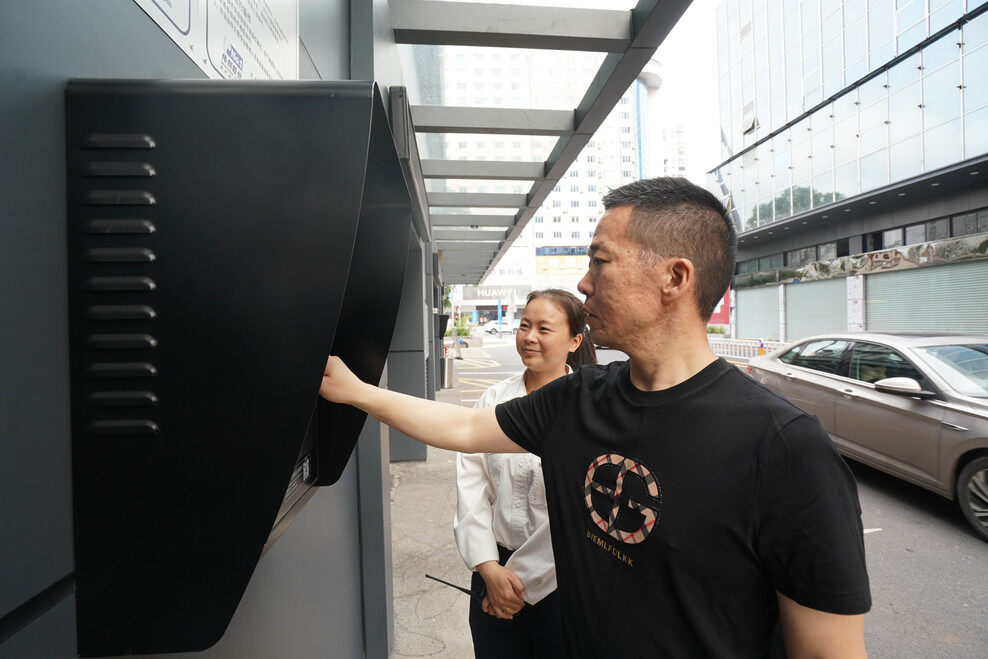 停車場工作人員協(xié)助車主進行取車。