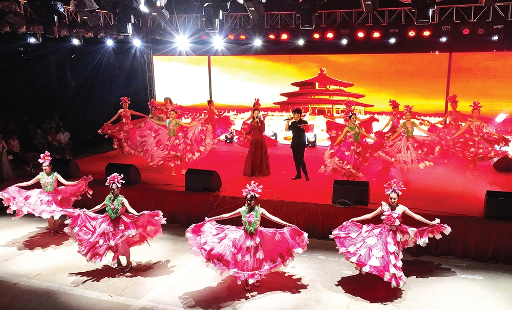 活動在舞蹈《繁花似錦》中拉開序幕,隨后一場令人熱血沸騰的燈光秀吸引了全場觀眾的注意,掀起了第一浪高潮。接著,舞蹈《萬疆》、古箏《盛世國樂》、客家舞蹈《茶香中國》、歌曲《海闊天空》、小丑歡樂雜耍、魔術《大變活人》等10余個節目輪番上演。優美的舞蹈、幽默的雜耍、激情的搖滾樂讓整場文藝演出亮點不斷,高潮迭起。演出中還穿插了有獎問答、舞蹈互動等環節,進一步活躍了現場氣氛,喝彩聲、掌聲此起彼伏。