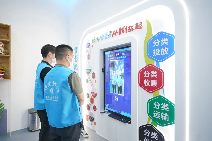 市民在市生活垃圾分類科普館參觀體驗。