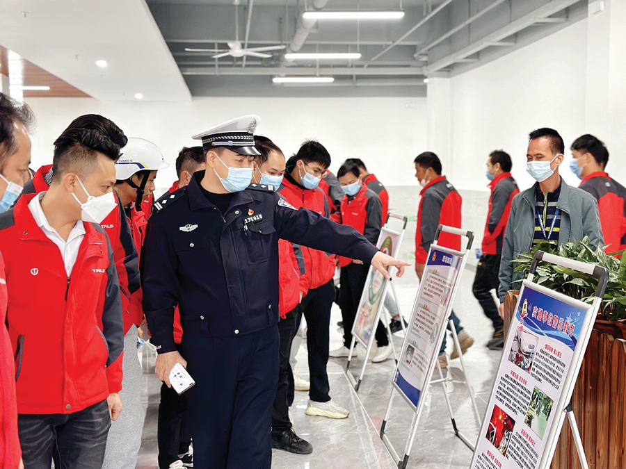 “全國交通安全日”我市公安民警進企業開展宣傳。惠州日報記者朱麗婷 攝
