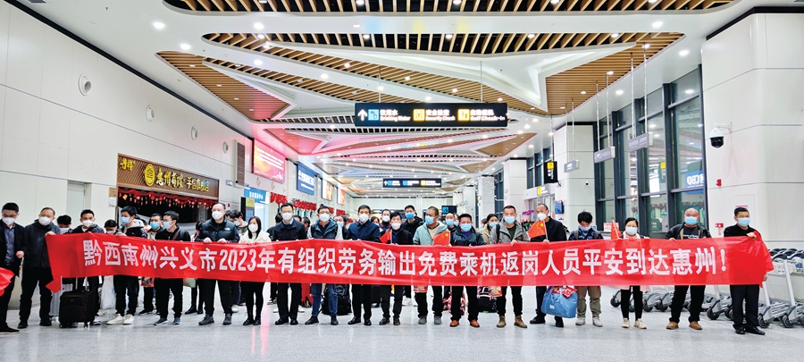 黔西南州務(wù)工人員免費乘包機抵惠返崗。惠州日報記者楊建業(yè) 攝