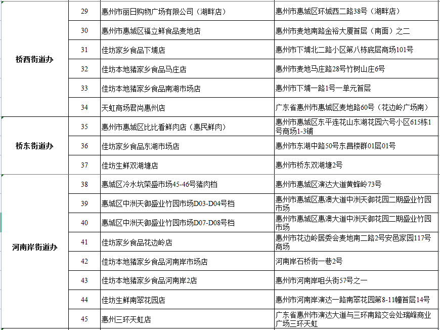 據介紹,50個調控點分別由市肉聯廠有限公司、佳坊農產品有限公司、麗日購物廣場、天虹商場、匯綠鮮果蔬農民專業合作社等企業承擔政府調控豬肉具體銷售工作。屆時,各調控點將會在適當位置懸掛“2023年春節期間政府價格惠民豬肉調控點”橫幅以及張貼“政府價格惠民豬肉調控價目表”。