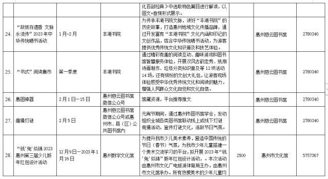 活動內容:惠州豐湖書院被譽為宋代廣東四大書院之一,是其中唯一一座得以重建、策展并向市民、游客開放的書院。1月15日,首場 “時和年豐” 春節主題系列活動將在豐湖書院舉行,為大家獻上一場精彩的非遺文化活動。