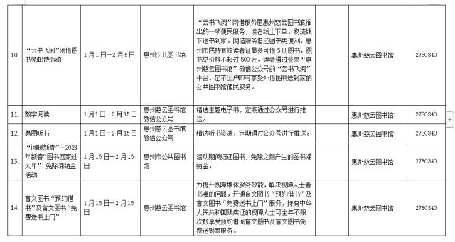 為廣泛開展快樂健身行動,增強全民健身意識,同時也豐富市民的節日業余生活。春節期間,惠州奧林匹克體育場、惠州體育館將繼續免費開放。主要開放項目有足球、田徑、網球、籃球、乒乓球、太極拳、廣場舞、輪滑、健身氣功等。