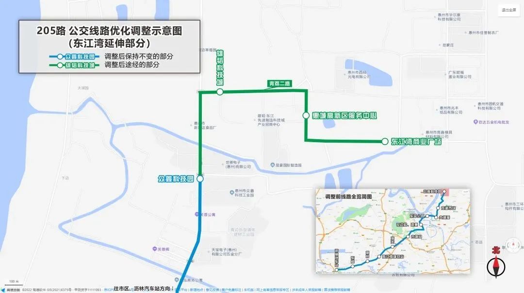 調整205路至東江灣商業廣場始發,經青荔三路、岃洛二路、青荔二路、H10鄉道至眾鑫科技園接回原線路。