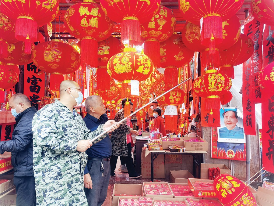 作為一條有歷史的老街,街尾井成為市民置辦年貨的首選之地,這里承載著許多市民的年味記憶。在街尾井周邊,商家一大早就把對聯、燈籠、福字、中國結等掛滿店面。當天盡管下著毛毛細雨,但已有市民前來感受“年味”。“我們來這里買對聯、利市封比較方便,東西都能買齊。還有各式各樣的紅燈籠,十分喜慶。”市民陳女士說。“今年紅燈籠暢銷,對聯也好賣,已批發幾千副。”一家店鋪老板吳阿姨介紹,元旦過后,紅燈籠的銷量一路攀升,有些款式已經多次補貨。