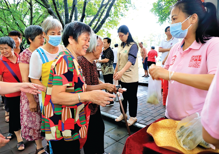 志愿者派粽子。惠州日?qǐng)?bào)記者李燕文 通訊員徐俊杰 攝