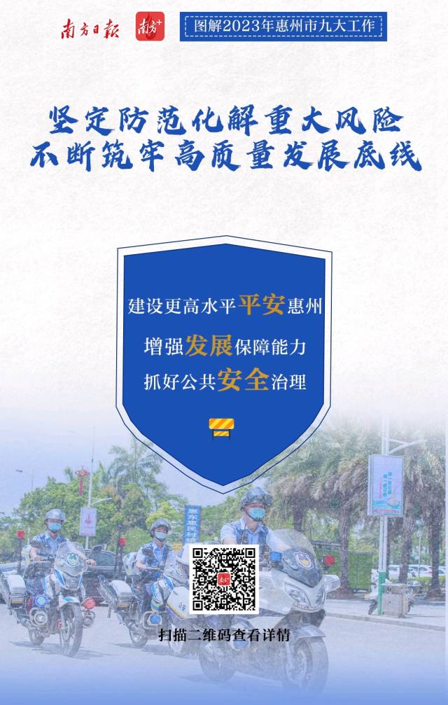 2月7日上午,惠州市第十三屆人民代表大會第三次會議開幕。會上,惠州市委副書記、市長溫金榮作市政府工作報告。惠州市政府工作報告提出,2023年重點聚焦九個方面重點工作,南方日報、南方+客戶端推出9張海報帶你速覽。