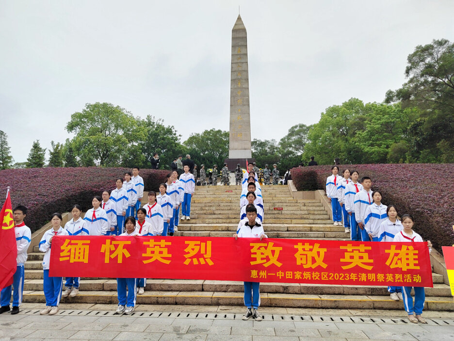 惠州市一中田家炳校區(qū)學(xué)生到東江人民革命烈士紀(jì)念碑前祭掃。