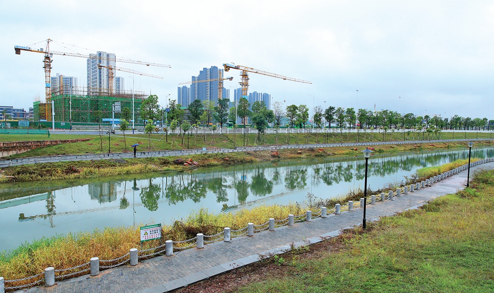 金山河整治后實現“河暢、水清、岸綠、景美”。