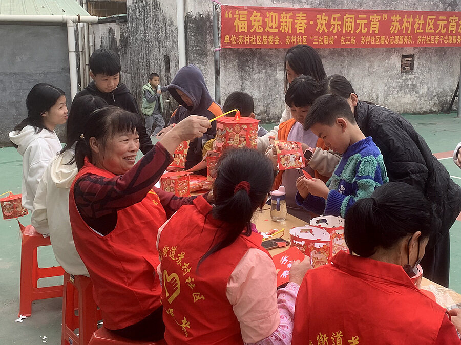 在元宵節來臨之際,為豐富社區居民的文化活動,增進社區居民間的互動交流,營造歡樂、祥和的節日氣氛,2月1日上午,由博羅縣民政局購買服務、惠州大亞灣區惠民社會服務發展中心承接運營的龍溪蘇村社區“三社聯動”社工站,聯合蘇村社區居委會、蘇村社區暖心志愿服務隊、蘇村社區親子志愿服務隊和蘇村社區健身隊開展“福兔迎新春,歡樂鬧元宵”游園暨慰問活動。