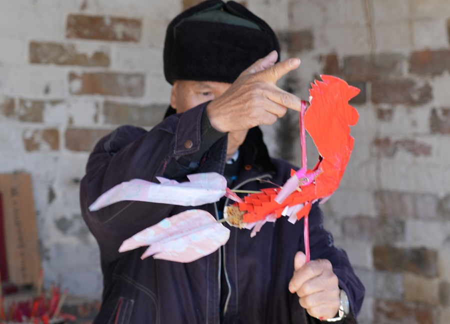 何廖福還告訴記者,他七歲開始跟爺爺學(xué)做花燈,虎頭花燈是以竹、紙為主要材料,它的制作過程主要包括扎架、剪紙、卷燈帶、裱糊、做燈斗與鳳雞等一個(gè)個(gè)組合成以三個(gè)大小不一的圓球體為主的虎頭花燈。