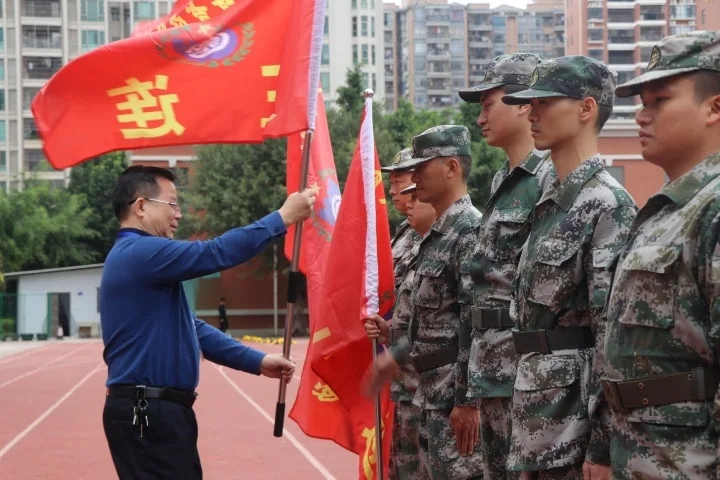據介紹,本次國防教育技能培訓為期四天。在開營儀式上,校長李木春為軍訓班級授旗,并希望全體參訓學生時刻遵守訓練紀律,服從命令,聽從指揮。勤學苦練各項動作,腰板要挺直,目光要堅定。牢固樹立集體榮譽感,團結的集體,不僅能收獲友誼,更能走出最整齊的步伐、喊出嘹亮的口號。技能培訓開始前,國防教育總教官對全體參訓學生進行了國防教育知識講解,教官們向同學們演示隊列。