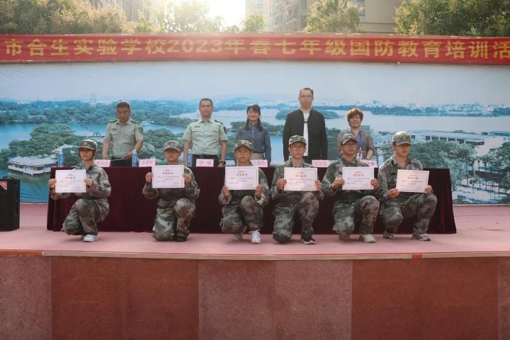 日前,惠州市合生實驗學校舉行國防教育技能培訓表彰大會暨結營儀式,該校七年級學生列隊集結,精神抖擻、斗志昂揚、目光堅定,以最好的狀態展示軍訓成果,帶來精彩的匯報表演。