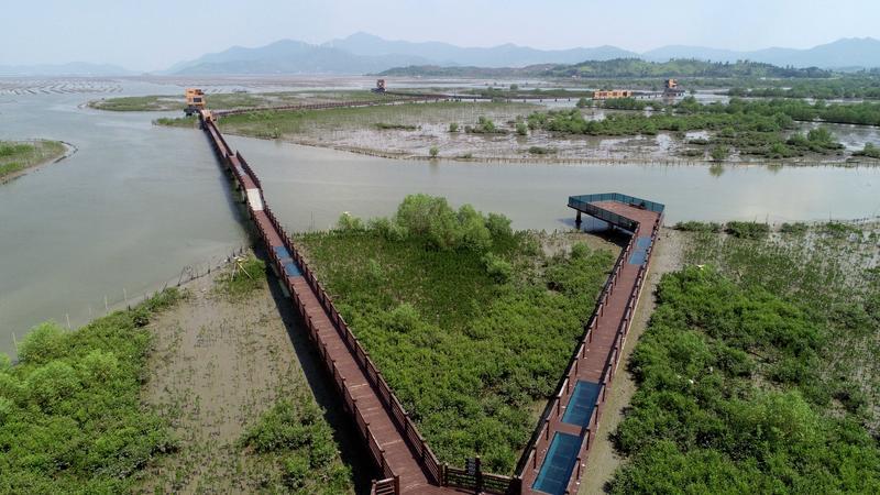 在好招樓市級濕地公園放眼望去,海岸線和海岸帶綿延不絕,紅樹林生長茂盛,呈環(huán)狀分布在考洲洋畔;近處海面上,船只競相出海,漣漪陣陣,呈現(xiàn)出人與自然和諧共生的美麗圖景。