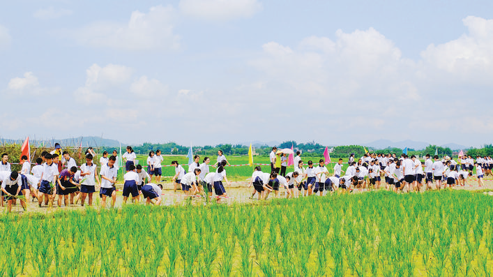 觀音閣鎮大力發展農旅項目。這是學生體驗插秧。