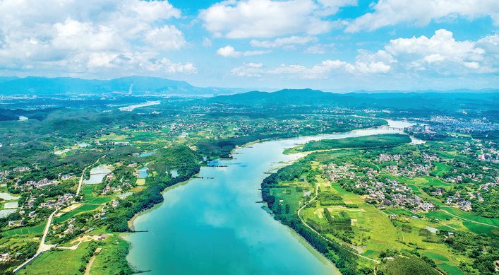觀音閣鎮位于博羅縣東部,東江貫穿全鎮。時值初冬,藍藍的天空倒映在波光粼粼的江面上,構成了一幅美麗的天然生態畫卷。沿著東江兩岸,綠樹、綠地相隨,為這幅天然的生態美卷增添了濃烈的一筆。