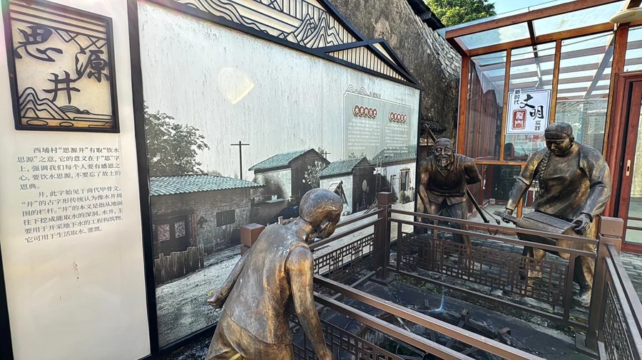 西埔村內(nèi)展示農(nóng)耕文化的雕像。