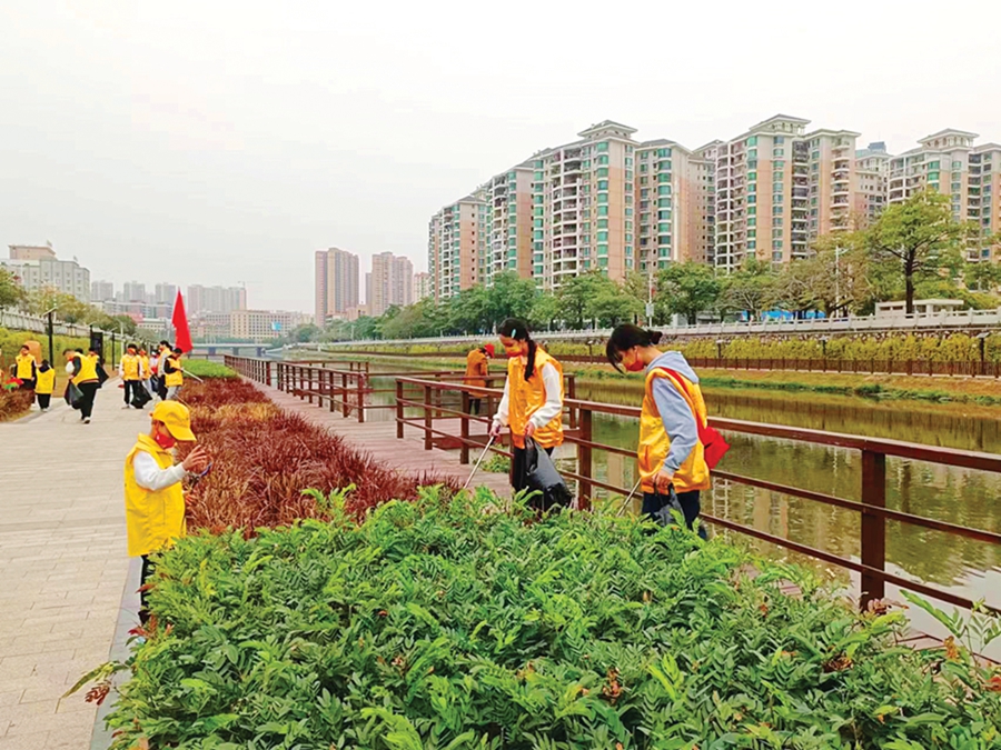 志愿者撿跑帶動身邊人愛護環境。 惠州日報記者洪鵲兒 通訊員葉衍達 劉曉玲 攝