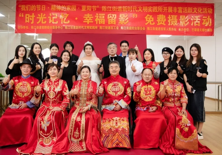 10月20日,陳江街道新時代文明實踐所在御湖社區開展“我們的節日·精神的家園·重陽節”豐富活躍文化生活——“時光記憶·幸福留影”活動,巴黎春天婚紗攝影免費提供技術支持,為御湖社區結婚30周年的14對夫妻免費拍攝婚紗照,通過活動的開展,讓這些相濡以沫的夫妻重溫年輕時光,感受愛情的甜蜜與美好。