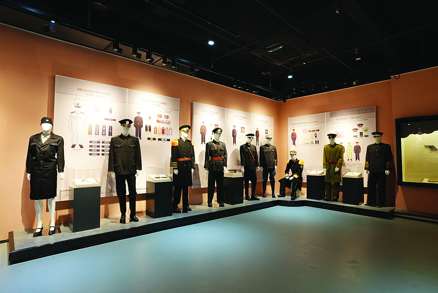 在二樓展廳內,最引人矚目的莫過于清末民國時期的警察服飾。1908年,清光緒帝頒布詔書統一警服和警銜,我國第一套警服出現,這套清末警服帽徽上有盤龍,人們稱之為“盤龍祥云”。館里還展示著一套民國警用標志,是當時博物館工作人員歷時三年,從臺灣、浙江、福建三個地方收集而成,可以說是在國內保存完整度非常高的一套警用標志。