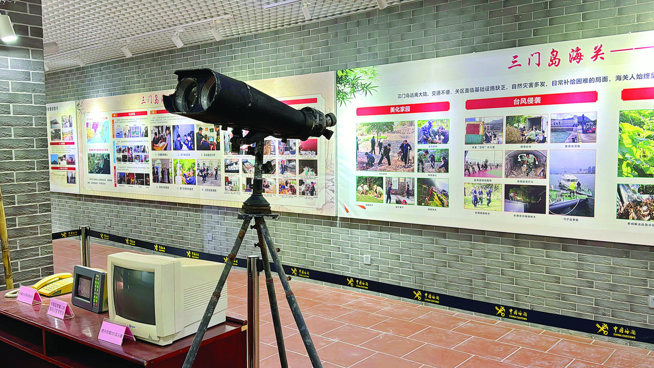 走進三門關史展覽室,墻上圖文并茂展示了三門島海關從清代開設關廠,一直到近年來科技助力海關開展進口監管的歷史脈絡。館內還展有建關初期使用的閘門、監管船舶的瞭望鏡、監管艇上的船用衛星導航儀等老物件,生動展現了海關監管技術的傳承和發展。