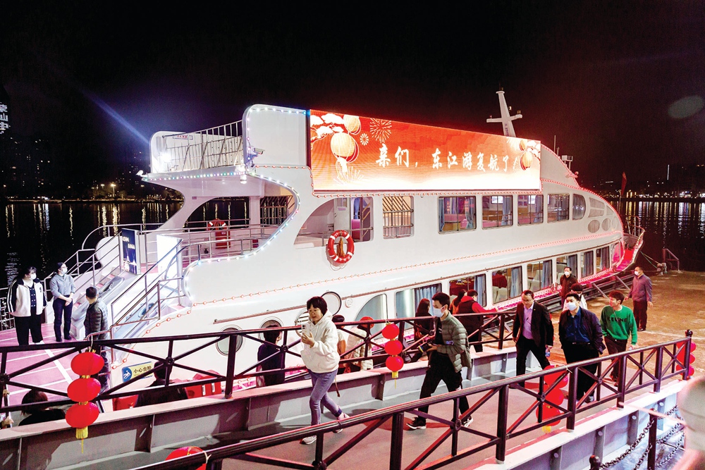 今年春節(jié)大年初一,惠州東江夜游重啟,乘客搭乘游船從合江樓畔碼頭出發(fā),一路向東觀賞水東街、東江沙公園沿線夜景,然后折返向西。“在江上看不一樣的惠州”,這一概念一經(jīng)打出,假期市場反應(yīng)熱烈,大年初三已經(jīng)賣完初六、初七的票。
