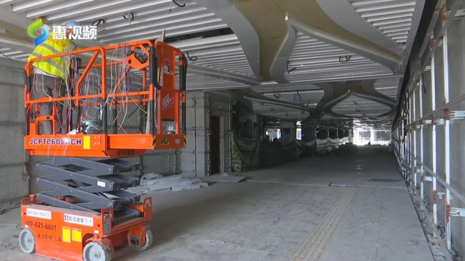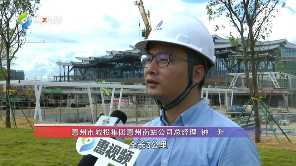惠州市城投集團南站公司總經理鐘升介紹:“市政配套主要包括宏達路(西接演達大道,東接惠澳大道,全長3公里),還有進出場站的站東、站西路,以及一條落客匝道。這個部分已經完成95%了,剩余標識標牌的安裝!