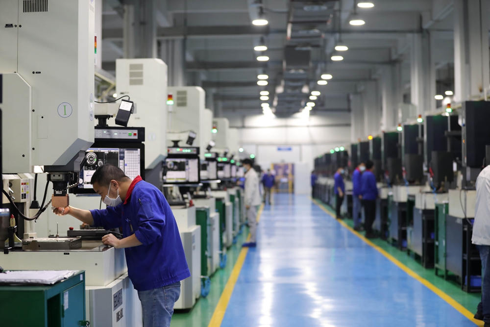 欣旺達惠州新能源產(chǎn)業(yè)基地的工人在生產(chǎn)線上調(diào)試設備。惠州日報記者湯渝杭 攝