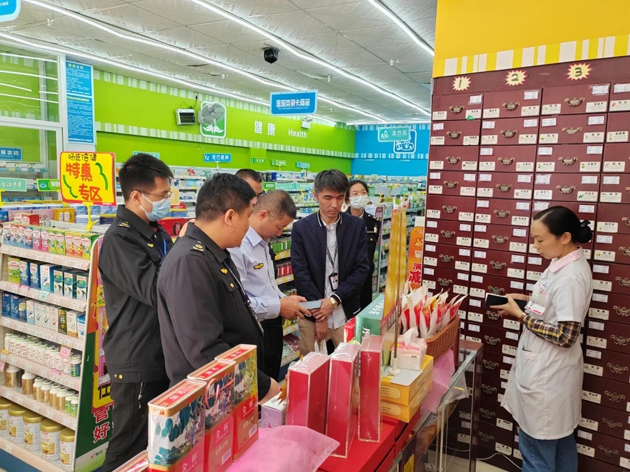 惠州市市場監督管理局與惠城區市場監督管理局的執法人員對藥店開展專項檢查。