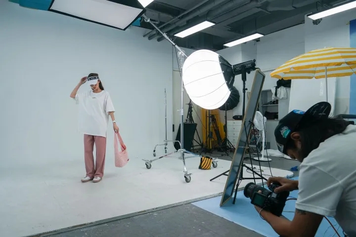 旭日集團電貿攝影工作室,工作人員正在拍攝產品。