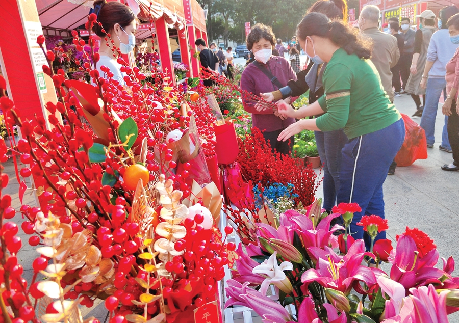 1月14日下午,天氣放晴,溫暖如春,花市熱鬧起來了:鮮花競相怒放、姹紫嫣紅,市民聞香而來,精心挑選。這是除夕前的最后一個周末,年味越來越濃,大家忙著置辦年貨,當然少不了年桔和鮮花,為新年增添一抹靚麗的“春色”。
