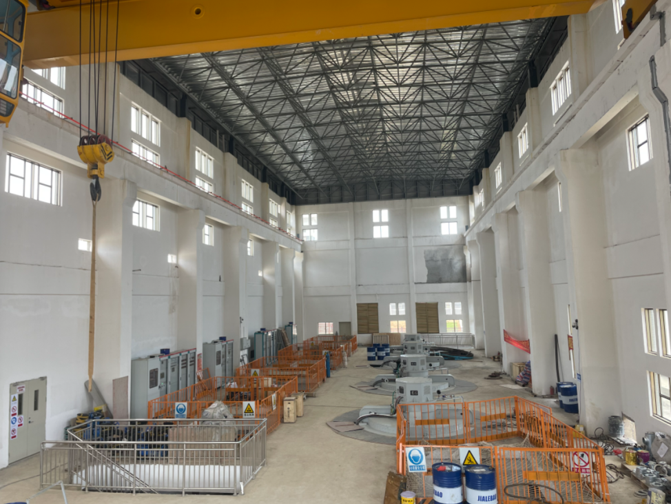 白花河防洪排澇治理工程項目控制性工程鎮區泵站(內部)。