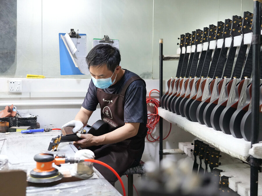 上世紀90年代臺商帶來的吉他產業,在這里成長壯大。最高峰時,秋長擁有近200家吉他制造相關企業,生產出全國2/5、全球1/5的吉他和全球7成的尤克里里,行業總產值達10億元。