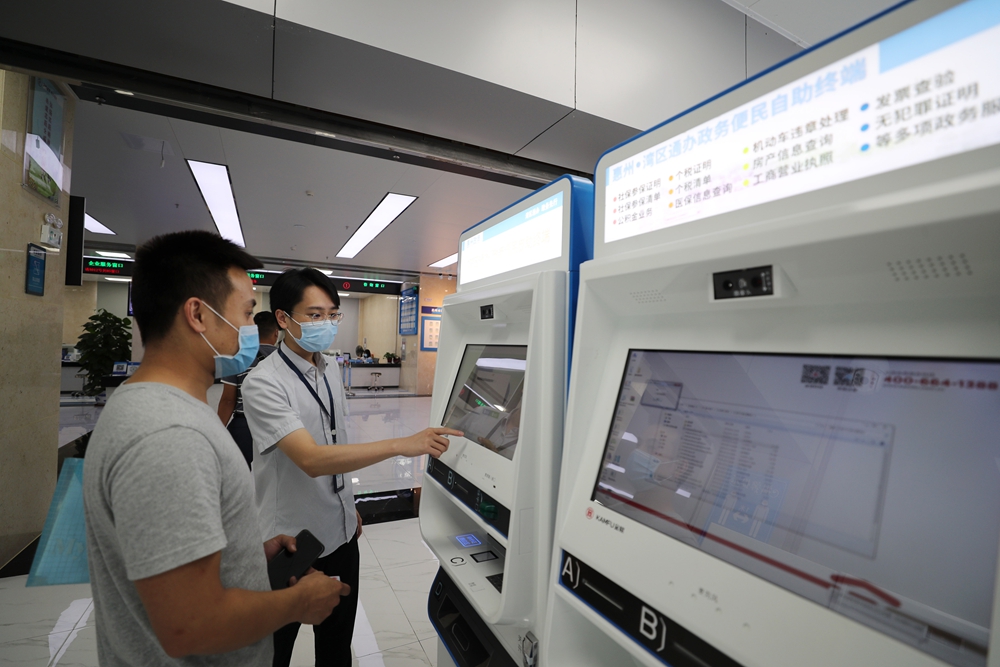 市民通過“灣區通辦”政務便民自助終端辦理業務。
