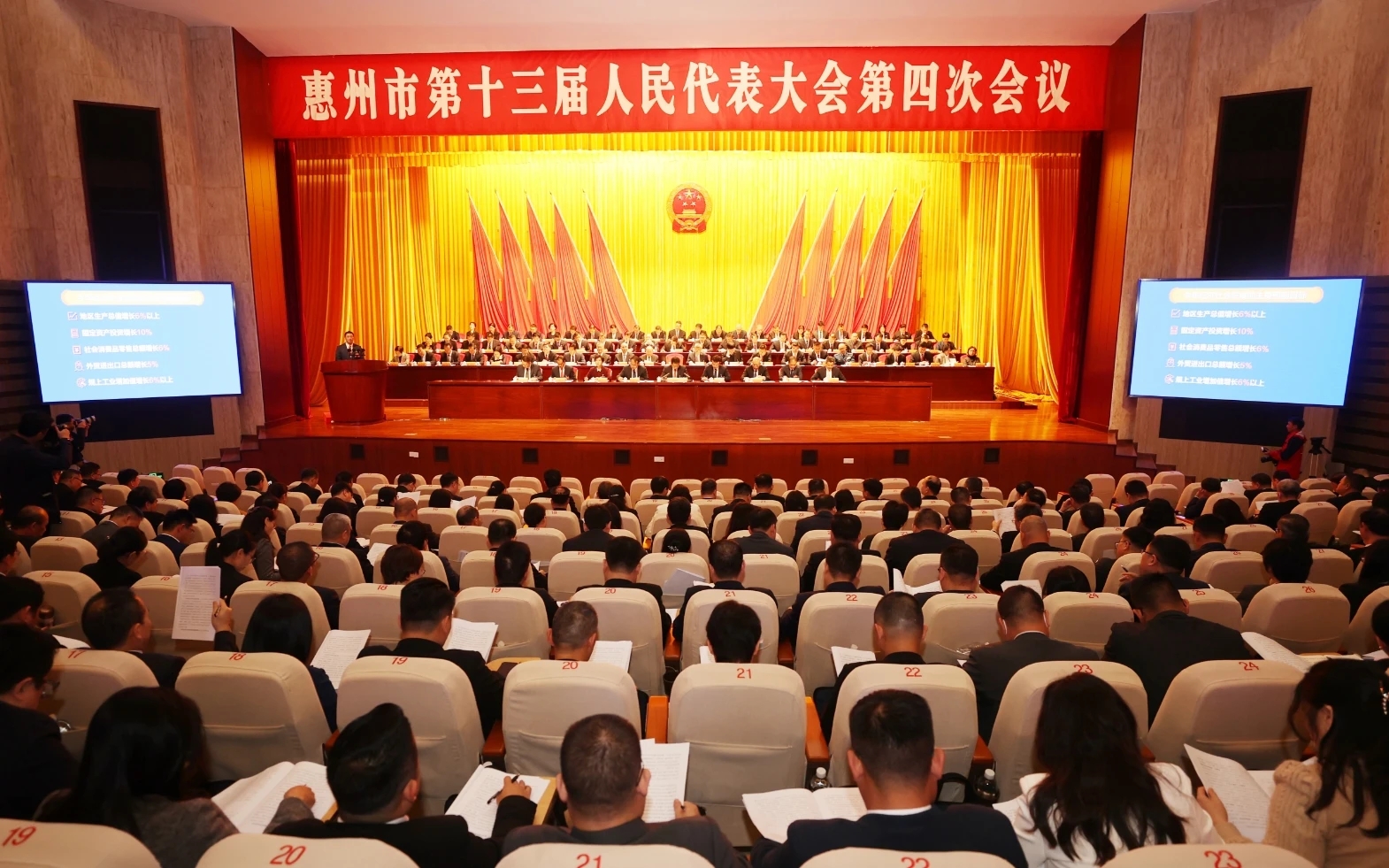 1月17日上午9時(shí),在雄壯的國歌聲中,惠州市第十三屆人民代表大會(huì)第四次會(huì)議在市會(huì)議中心開幕。