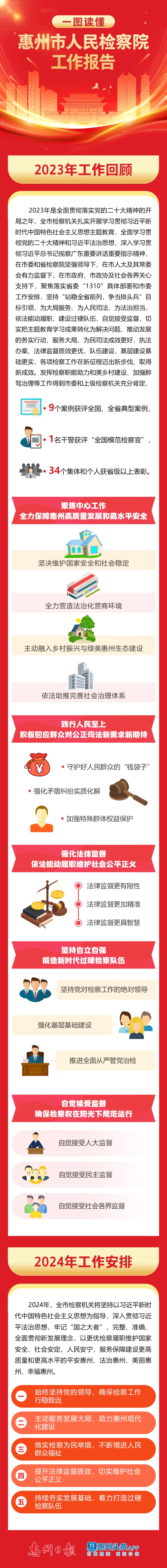 1月18日上午,惠州市第十三屆人民代表大會第四次會議第二次全體會議舉行。市檢察院負責人作惠州市人民檢察院工作報告。去年市檢察院工作有哪些亮點成績,今年有哪些重點安排?現在帶您一圖讀懂!
