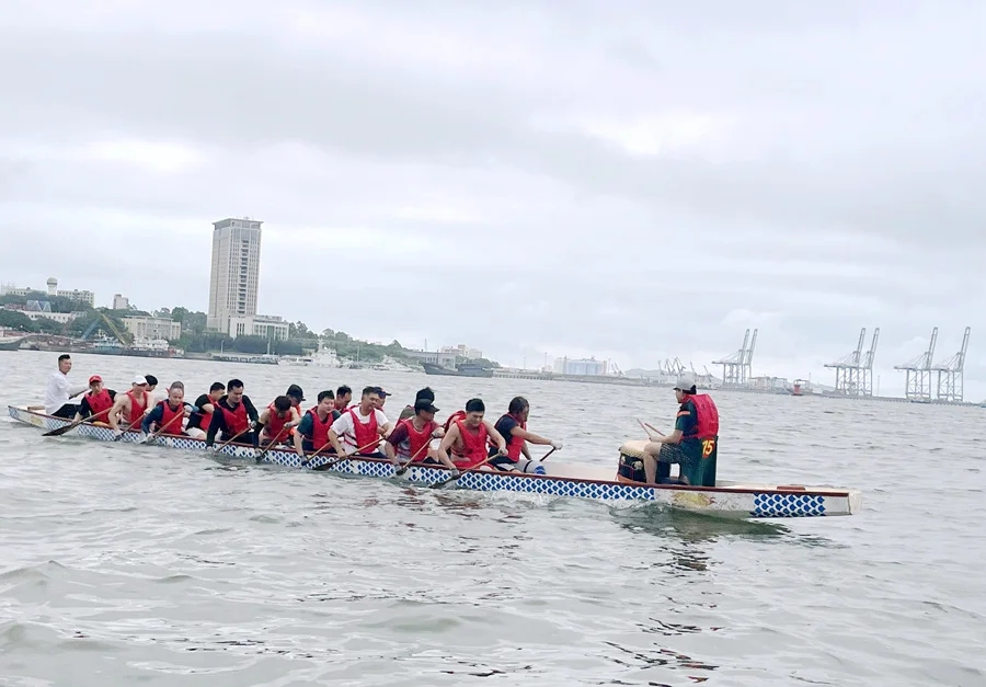 ?在大亞灣澳頭金門塘碼頭,伴隨著密集的鼓聲,一艘艘亮眼的龍舟在海面破浪前行。5月22日,距離端午節還有十多天,參加今年大亞灣端午節龍舟賽的代表隊已經緊鑼密鼓地開展水上訓練,備戰大賽。