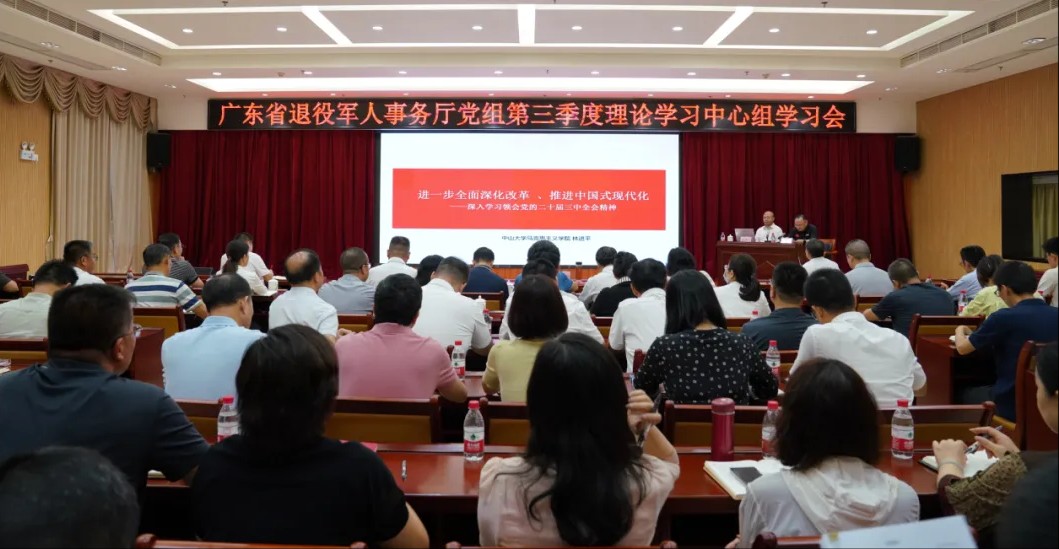 9月20日上午,廣東省退役軍人事務廳以理論學習中心組學習擴大會的形式,邀請省委學習貫徹黨的二十屆三中全會精神宣講團成員、中山大學馬克思主義學院院長林進平作宣講輔導,深入學習領會黨的二十屆三中全會精神,凝聚深化我省退役軍人事務領域改革的強大動力。廳黨組書記、廳長王創主持會議并講話。