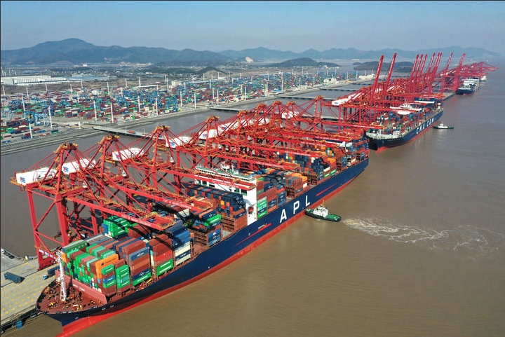 東海之濱,巨輪往來、集卡穿梭……繁忙的場景每天都在浙江寧波舟山港上演,彰顯中國經(jīng)濟持續(xù)涌動的發(fā)展活力與強大動力。