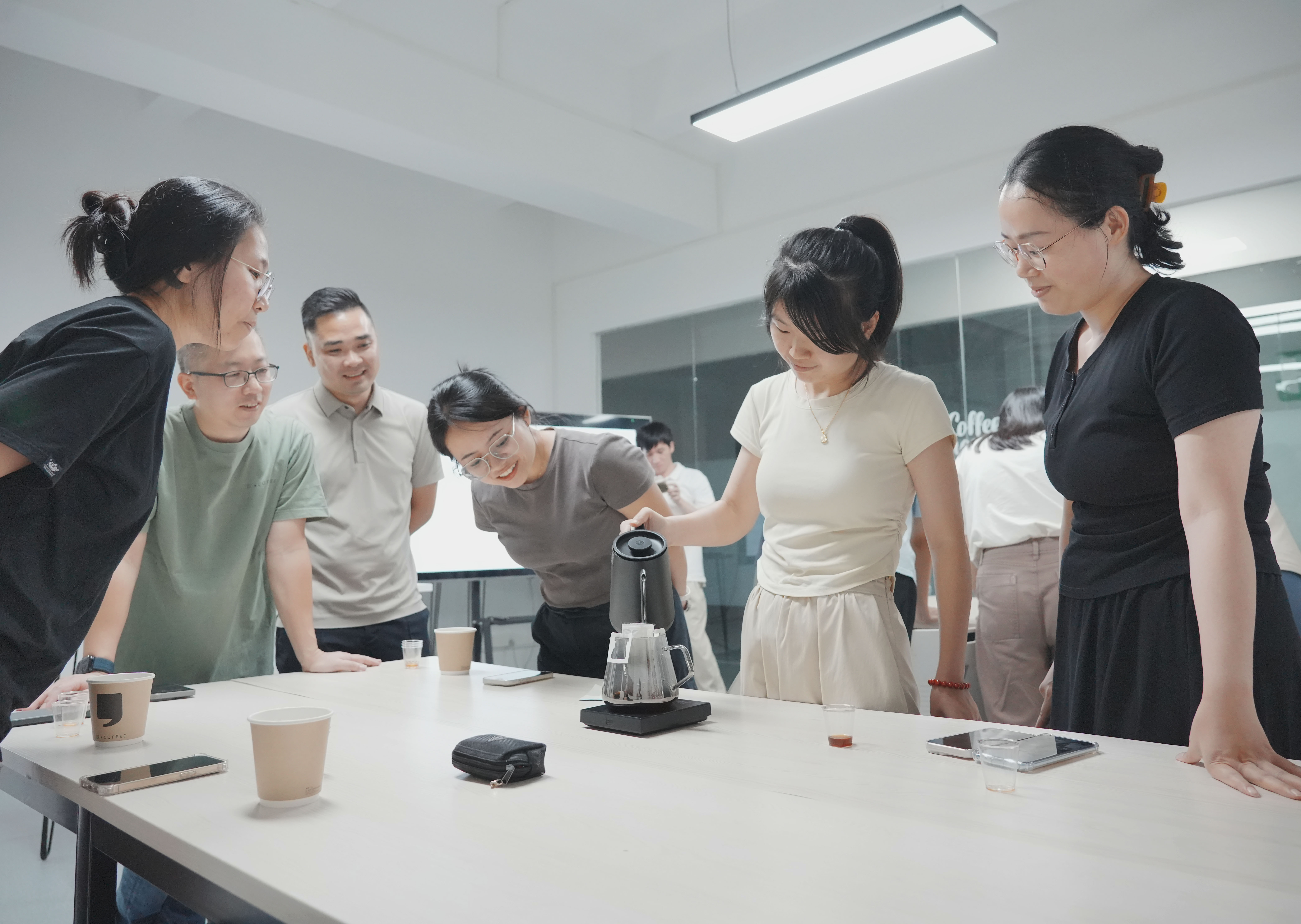“我們可以通過咖啡杯測來鑒別咖啡的好壞、風味,我邀請幾位同學一起來操作。”老師的話音剛落,扎著馬尾的劉曉芬就舉起了手,興致勃勃地品測咖啡,整堂課上她都十分投入和享受。