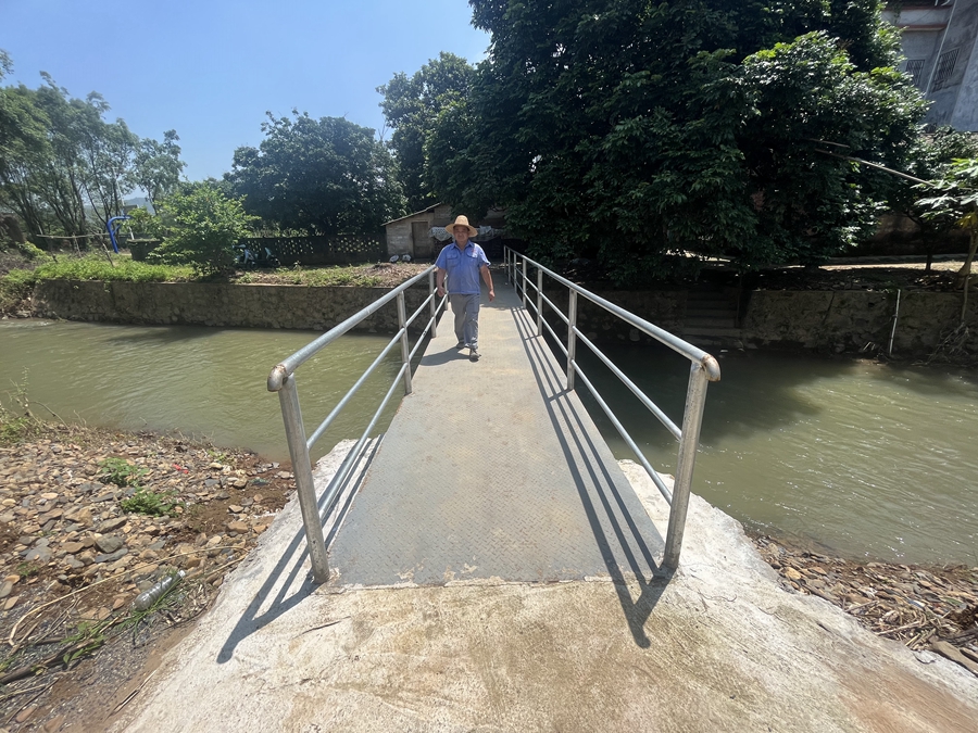 得知情況后,維新村下新屋村民小組鄉賢劉東子捐資5萬元,幫助村里在河上搭建一座鐵橋,方便村民出行和勞作。有了資金保障,在維新村“兩委”與村民的共同努力下,經過20多天的緊張施工,一座嶄新的鐵橋于今年3月建成投用。這座鋼板橋的橋面寬敞,除了人員可通行外,農用三輪車也能通行,既方便了村民勞作,也便捷了農產品的運輸。