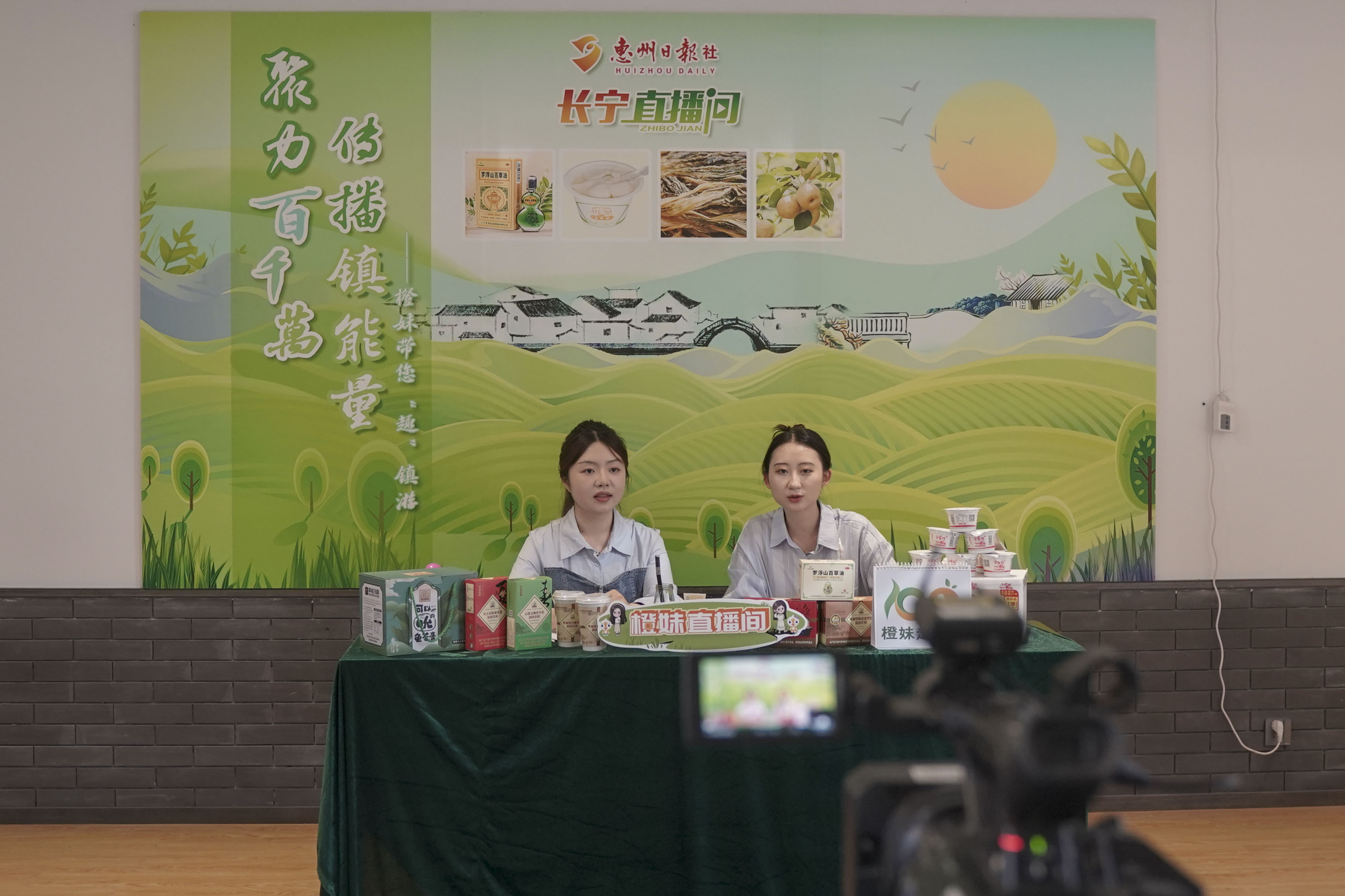 惠州日報(bào)社首個(gè)“鎮(zhèn)直播間”長寧直播間開播現(xiàn)場。惠州日報(bào)記者陳濤 湯渝杭 攝
