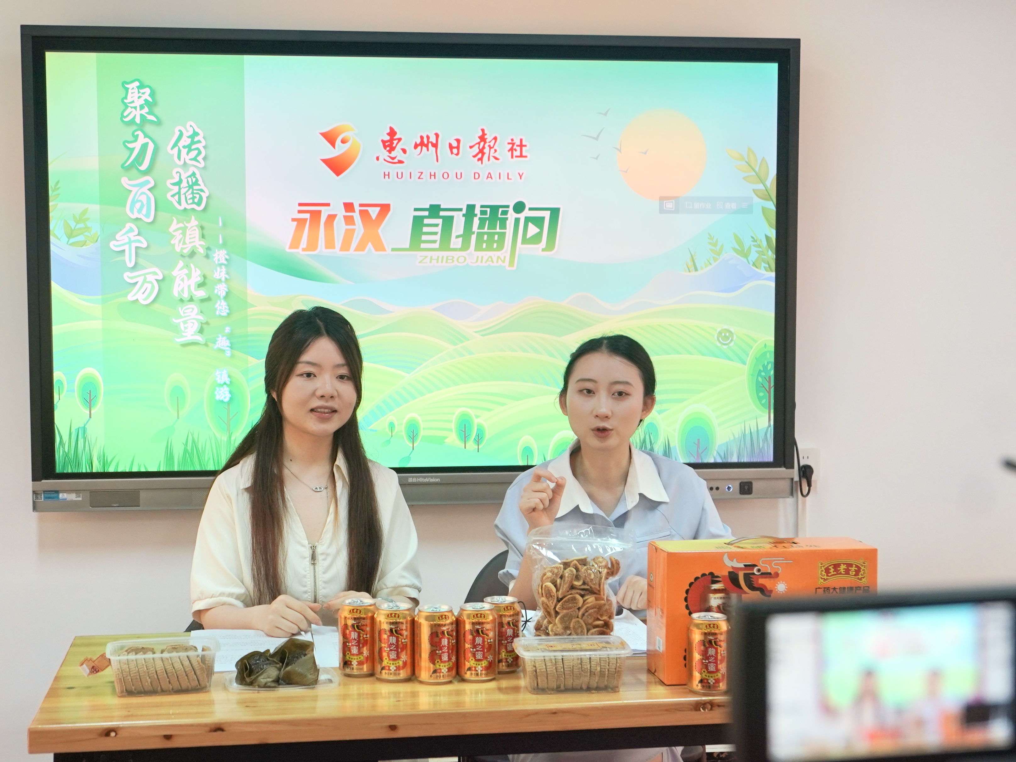 惠州日報社永漢直播間直播現場。惠州日報記者湯渝杭 羅劍業 陳濤 攝