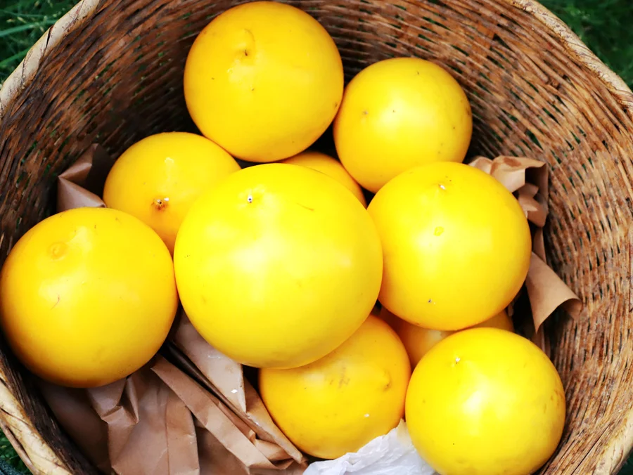 采摘下來的黃澄澄圓滾滾的黃晶果。