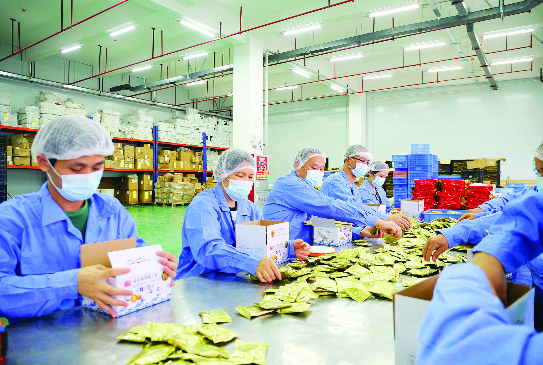 中食順香員工在包裝食品。惠州日報記者黃鑫威 攝