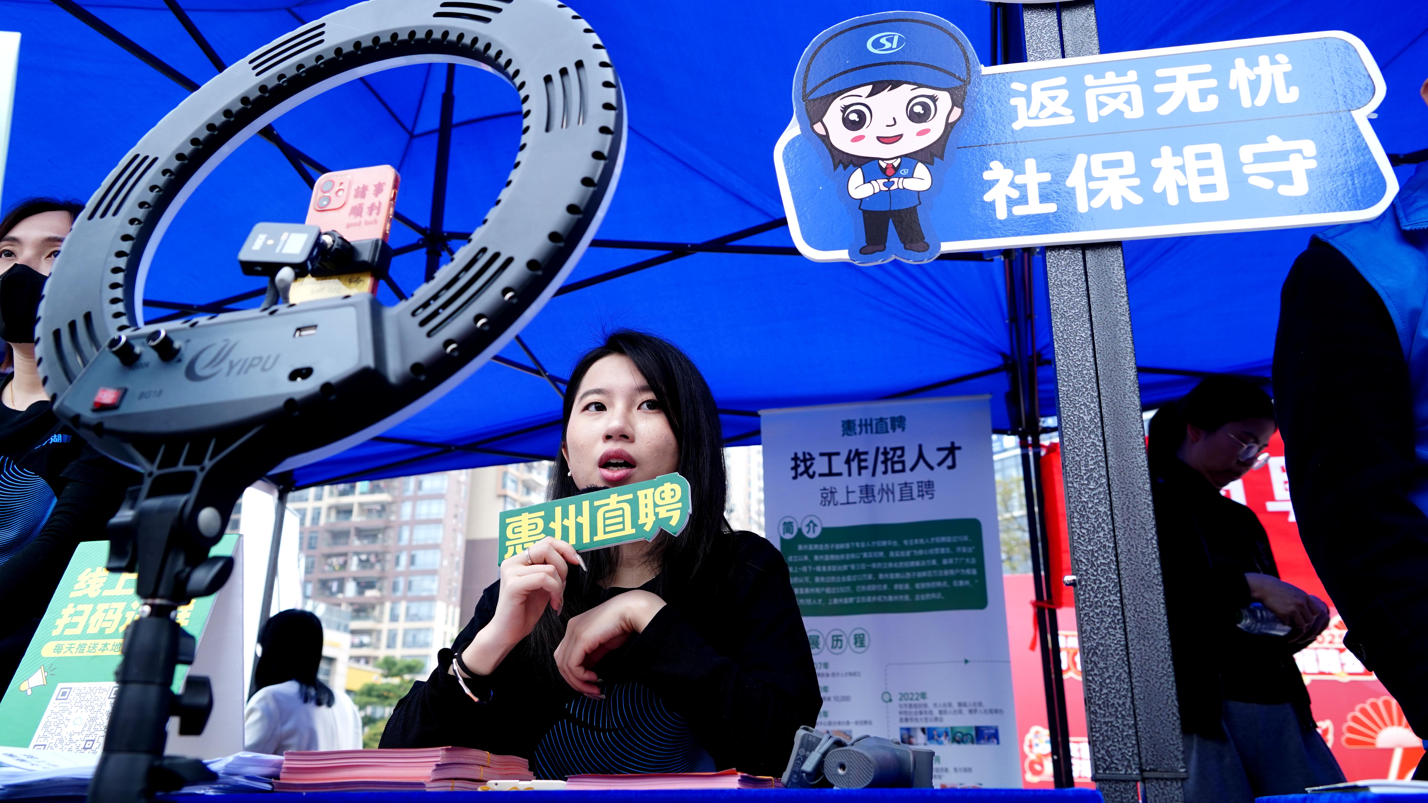 直播帶崗成為招聘會的新亮點;葜萑請笥浾呃钏蓹 攝