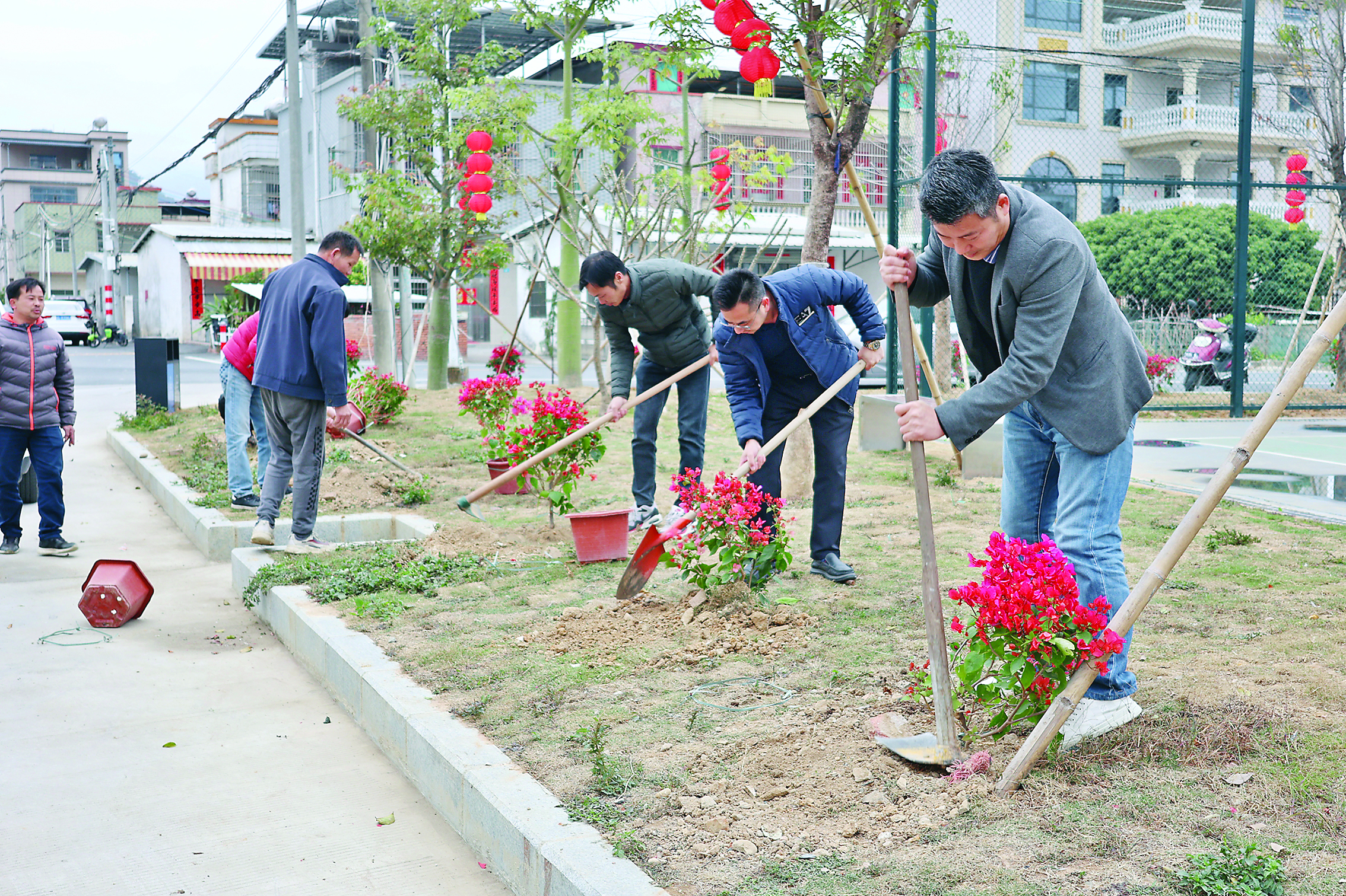 “自己的家當然要裝扮得美麗漂亮。村里道路白改黑后,更需要時花來襯托。”張錦強是企嶺村人,從去年開始,他就堅持為企嶺村的迭企路免費更換時花,目前已更換了3個季度。包括種樹、種時花在內的美化環境花銷,已累計投入約23萬元。