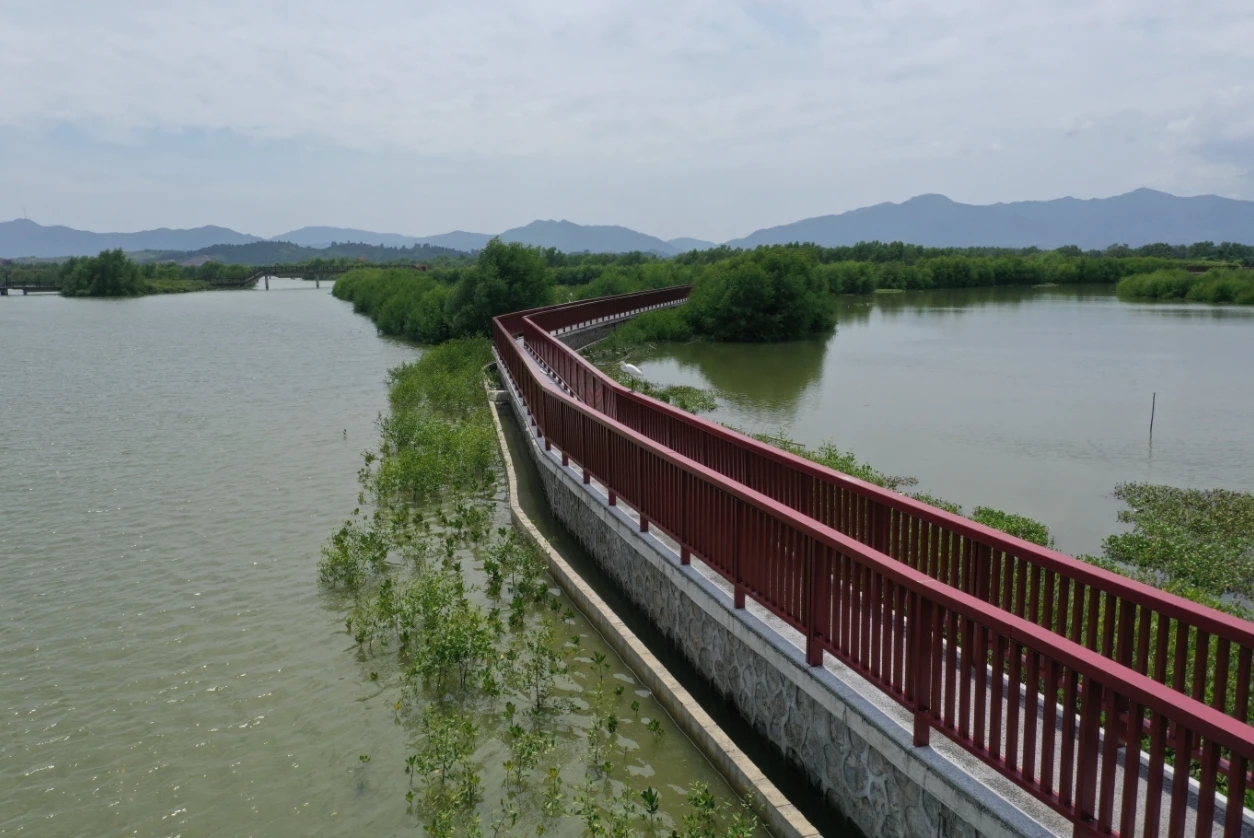秋日里的好招樓濕地公園,湖水碧波蕩漾,鷺鳥振翅翱翔;綿延的海岸線上,連片種植的紅樹林已有一米多高,不少游客迎著徐徐海風(fēng)在此觀鳥游憩,好不愜意……在這里,萬畝級(jí)紅樹林示范區(qū)的雛形已呼之欲出,一個(gè)集科研監(jiān)測(cè)、科普宣教、生態(tài)旅游、濕地文化體驗(yàn)等于一體的濕地公園即將在這里全新亮相。